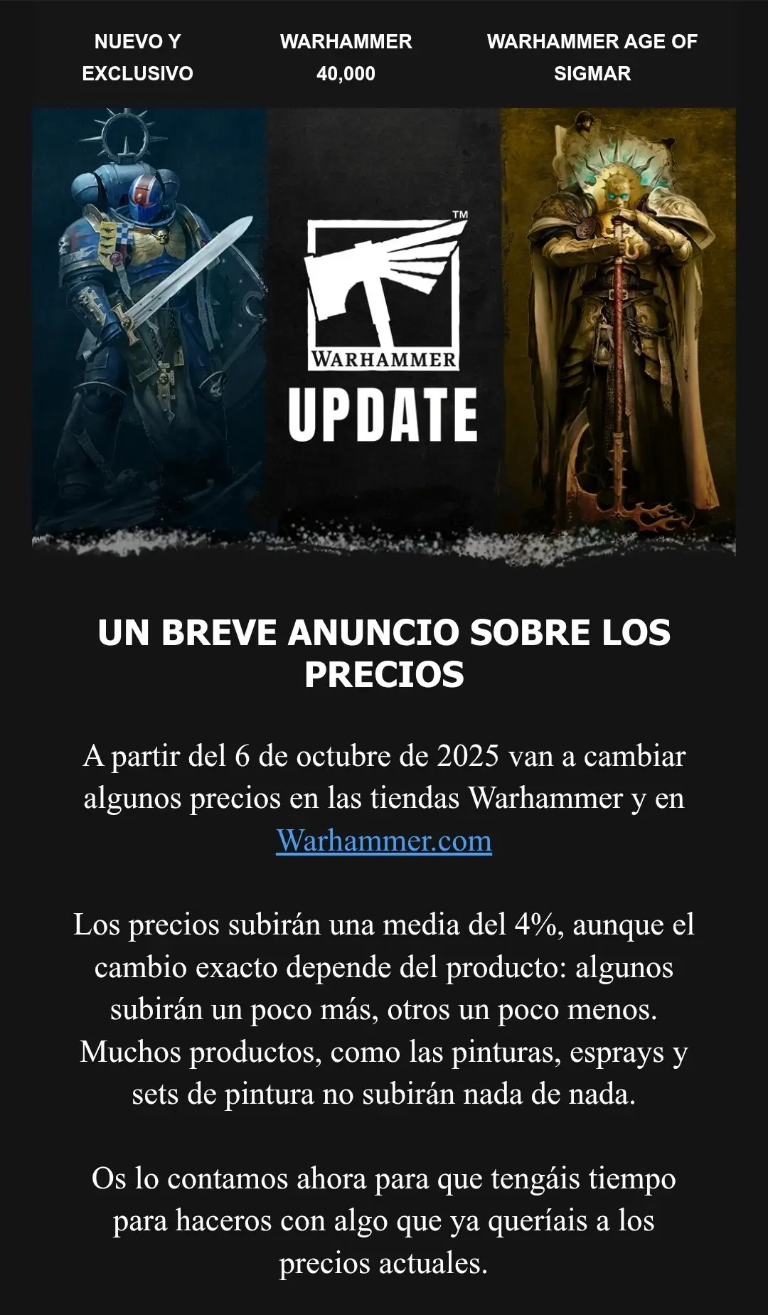 Games Workshop subirá los precios a partir del 6 de octubre