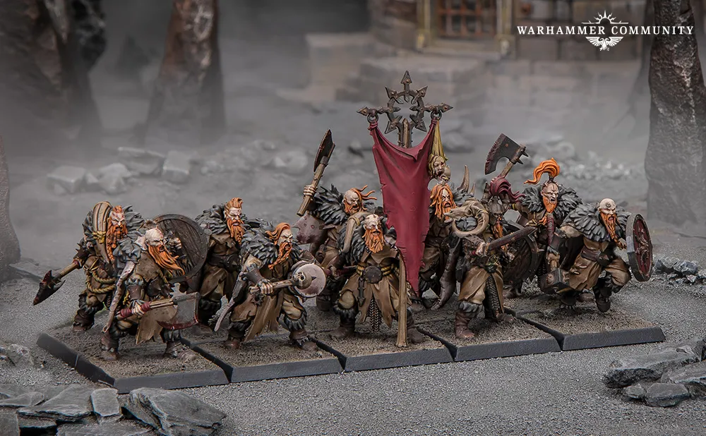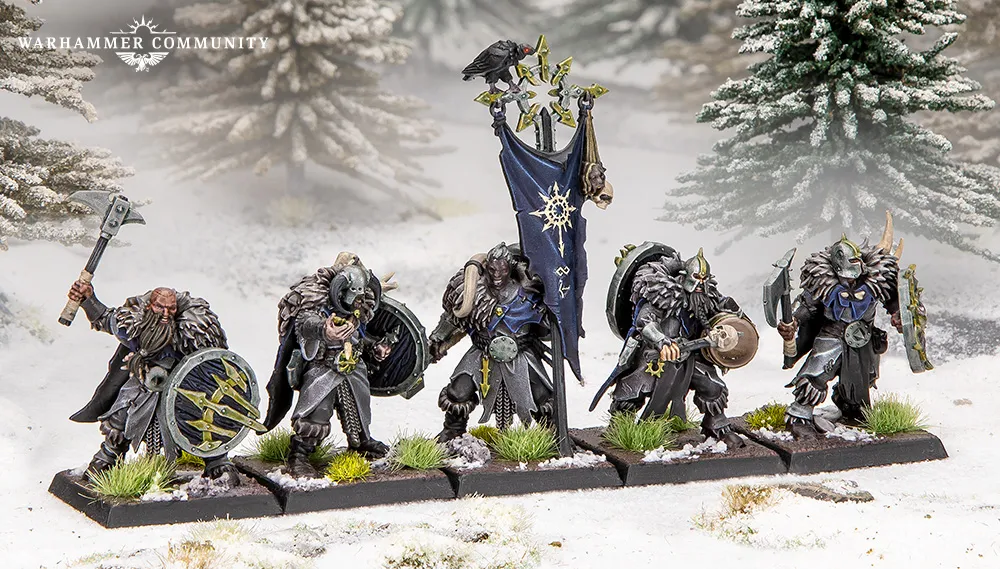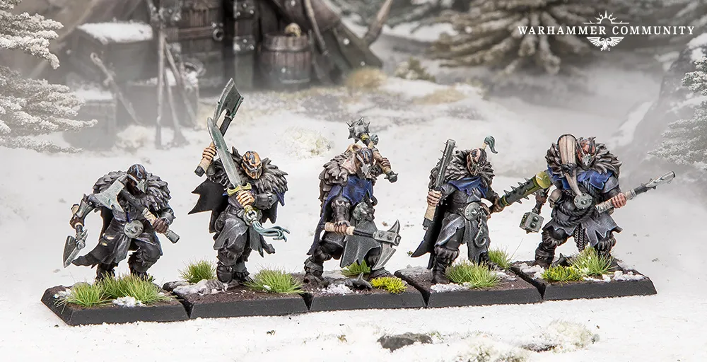 Cuando conseguí los nuevos kits, decidí ampliar mi ejército de Lobos del Mar con dos unidades con mayales, ambas dedicadas al Cuervo Carroñero. Descubrí que, como las miniaturas tienen tanto pelaje y tela, era un placer usar muchos lavados diferentes y ensuciarlas de verdad. Esto también encajaba a la perfección con la temática del Culto al Cuervo Carroñero. Después, planeo añadir a Frydaal el Hacedor de Cadenas para tener un héroe que lidere este contingente de mi ejército de Guerreros del Caos.