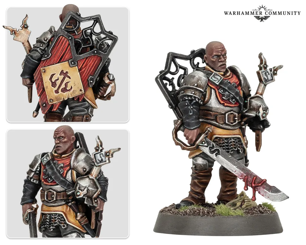 La sangre aún gotea por la espada de este agotado Sargento de armas de las Ciudades de Sigmar mientras repasa con la mirada los estragos de una batalla reciente. Sus brazos y su armadura están mellados y desgastados —señales claras de una campaña brutal— y a sus pies yace la cabeza decapitada de un desafortunado Mandamalo, medio enterrada en la tierra.