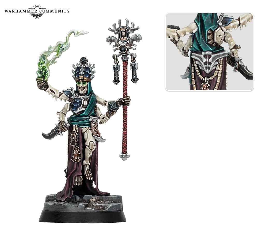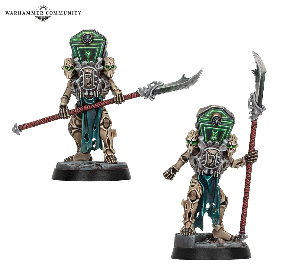 Para ayudarle en su misión, Thanatek ha traído a algunos amigos. Tukhar y Sekhmor son Segadores Mortis, asesinos letales especializados en destripar objetivos prometedores, y Xar-Tamok y Medeb-Ahk son sirvientes de la casta Mornial que llevan un práctico cofre entre sus dos cabezas. Este es principalmente para llevar huesos y objetos místicos del alma, pero imagínense lo práctico que sería para ir al supermercado.